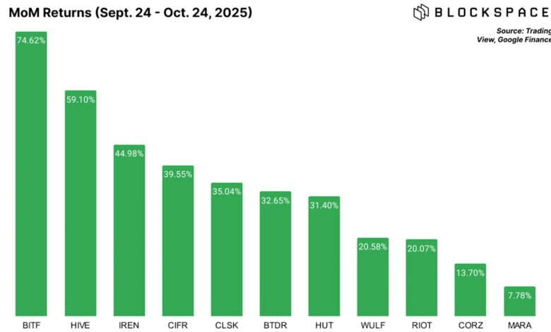 The bitcoin mining stock prices for each of these companies is still up on the monthly, with all but MARA seeing double digit returns.
