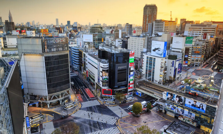 People crossing the street in Shibuya, Tokyo.